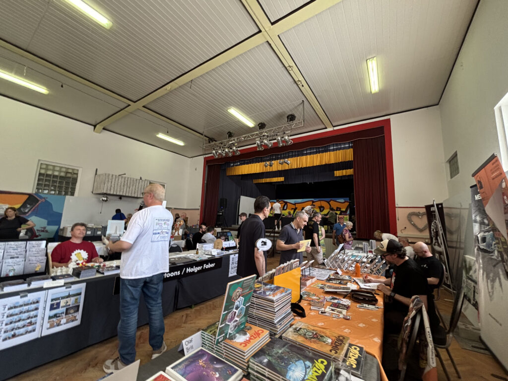 2025 war ein Tour-Jahr, (meist) zusammen mit Olaf Brill war ich in vielen deutschen Städten und in zwei Nachbarländern unterwegs, um neuen und alten Lesern den „kleinen Perry“ und einige meiner anderen Comics näher zu bringen. Auftaktveranstaltung und Lokalderby war die Berliner Comicmesse, die wie immer in den Tegeler Seeterrassen stattfindet und eigentlich eher eine Comicbörse ist, aber unterdessen auch viele Comickünstler*innen aus Berlin und darüber hinaus anlockt. Mit im Schnitt etwa 1000 Besuchern ist diese Veranstaltung auch nicht wirklich klein.