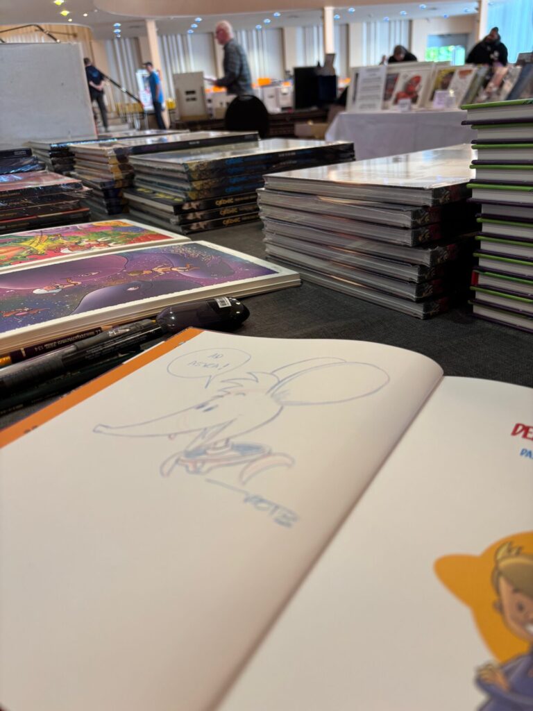 Berliner Comicmesse kurz vorm öffnen der Tore – Stand ist aufgebaut und die ersten Signaturen gezeichnet.